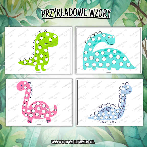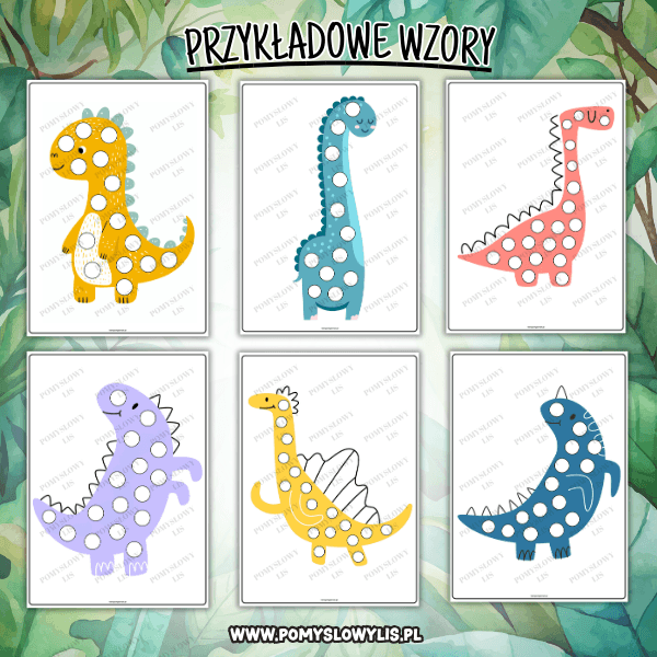 Szablony wyposażone są w białe pola – kropki, które dzieci mogą wypełniać na wiele kreatywnych sposobów: