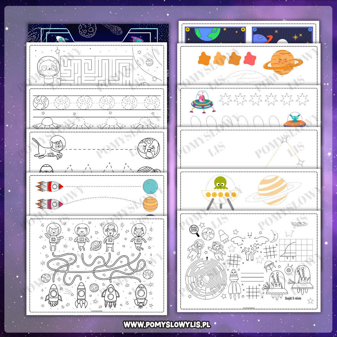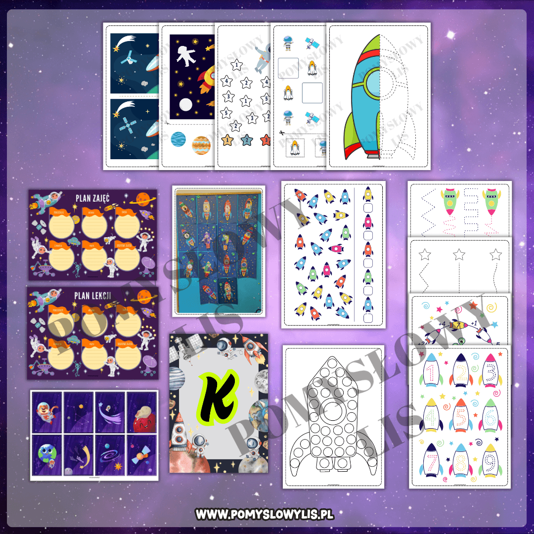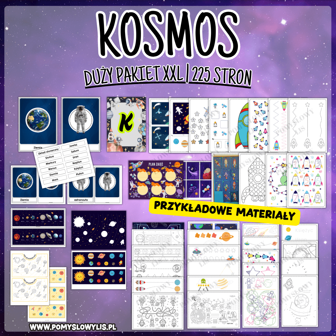 Zamiast szukać pojedynczych materiałów w internecie, sięgnij po kompletny i spójny pakiet edukacyjny, który w atrakcyjny sposób wprowadza dzieci w tematykę KOSMOSU.