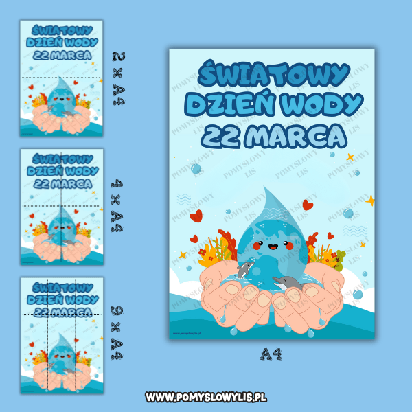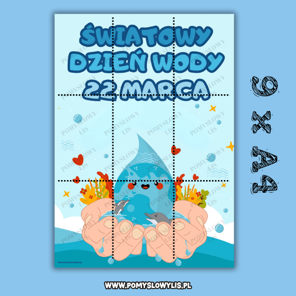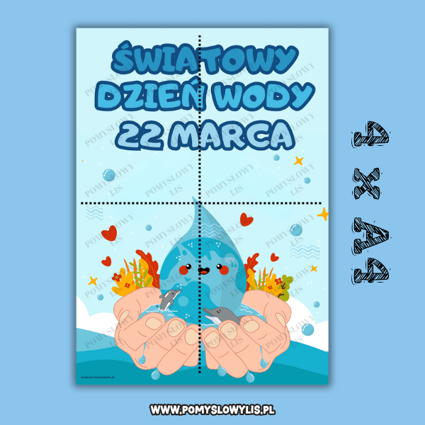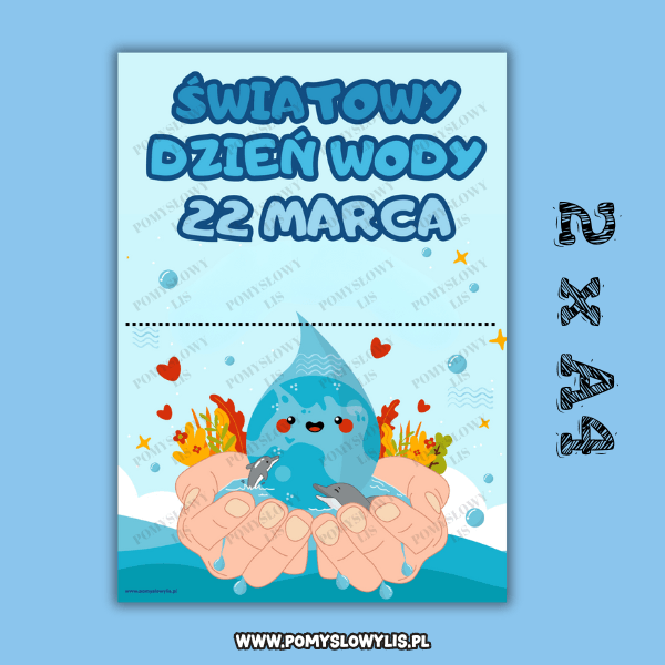 Czytelna grafika i motyw wody przyciągają uwagę dzieci i pomagają rozpocząć rozmowę o tym, dlaczego woda jest tak ważna. 🌊